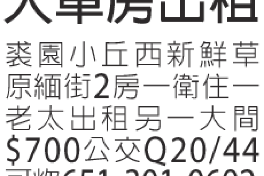 裘園小丘 西新鮮草原Main街 兩房一衛住一老太現出租另一大間,可炊,$700不挑人 公交Q20/44