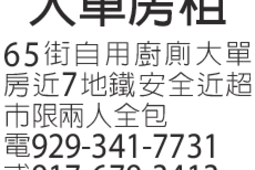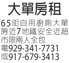 紐約昆士65街自用廚厠大單房,近7地鐵安全近超市,限兩人全包請電929-341-7731或917-679-3413