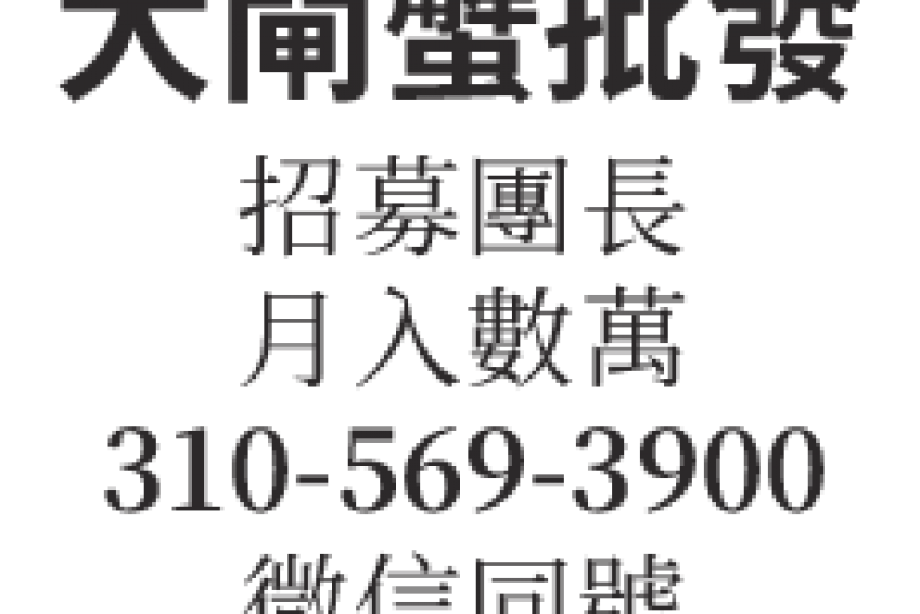 招募團長 ,月入數萬,請電: 310-569-3900 微信同號