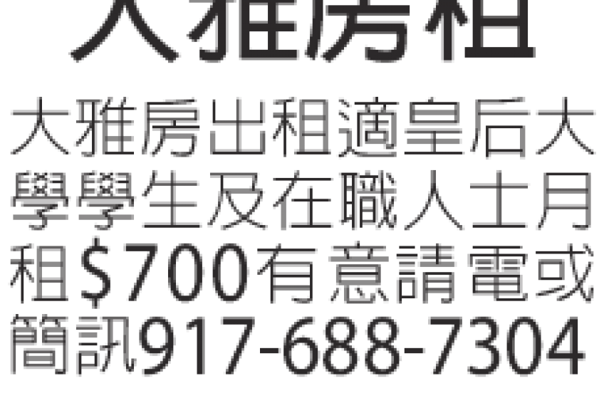 大雅房出租適皇后大學學生及在職人士,月租700!有意者請來電19176887304或留簡訉