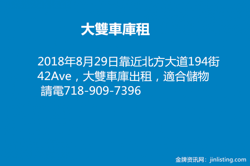 靠近北方大道194街42Ave,大雙車庫出租,適合儲物 請電718-909-7396