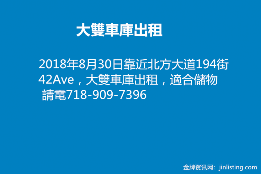 大雙車庫租     718-909-7396