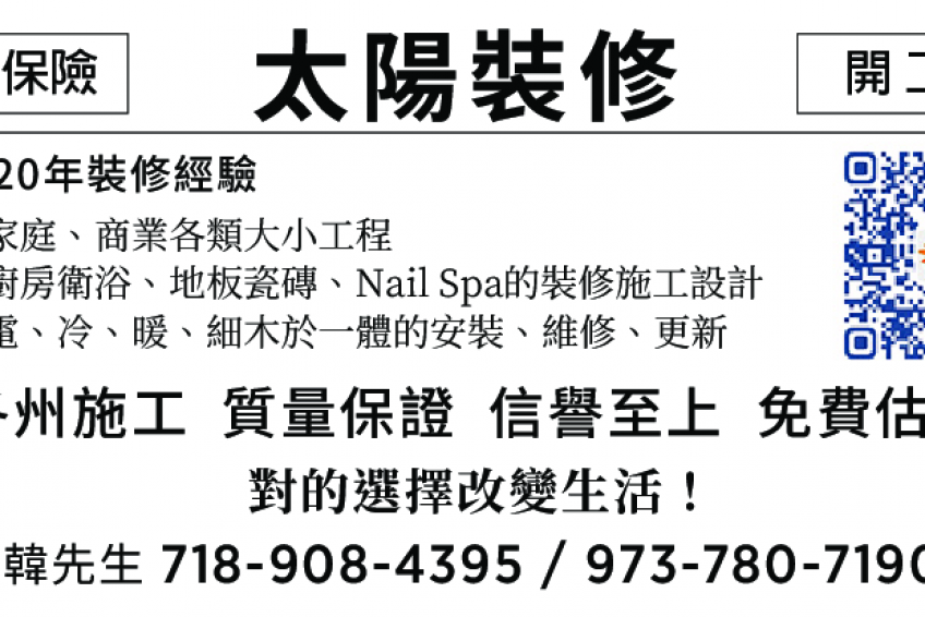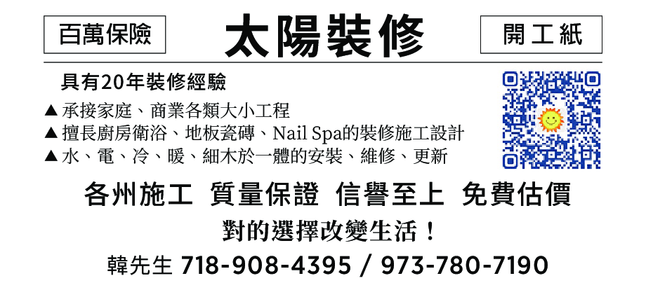 太陽裝修 718-908-4395