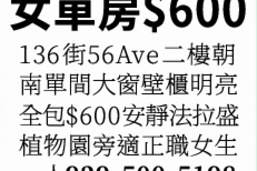 全包$600安靜法拉盛