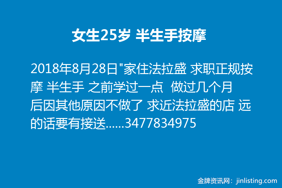 “家住法拉盛 求职正规按摩 半生手 之前学过一点