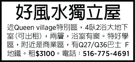 近Queen village特別區,4臥2浴大地下室(可出租),兩層,浴室有窗。