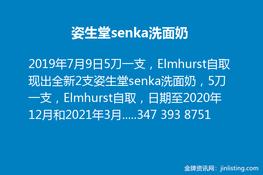 姿生堂senka洗面奶,5刀一支,Elmhurst自取 现出全新2支姿生堂senka洗面奶,5刀一支,Elmhurst自取,日期至2020年12月和2021年3月,请联系电话347 393 8751