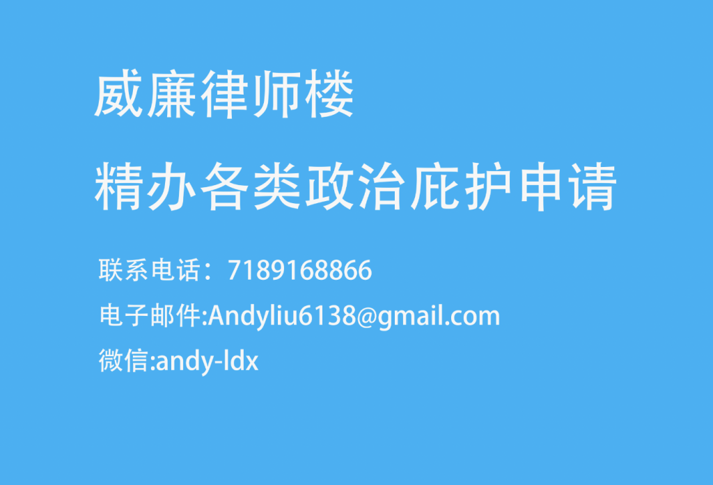 威廉律师楼 精办各类政治庇护申请 联系电话:7189168866 电子邮件:Andyliu6138@gmail.com 微信:andy-ldx