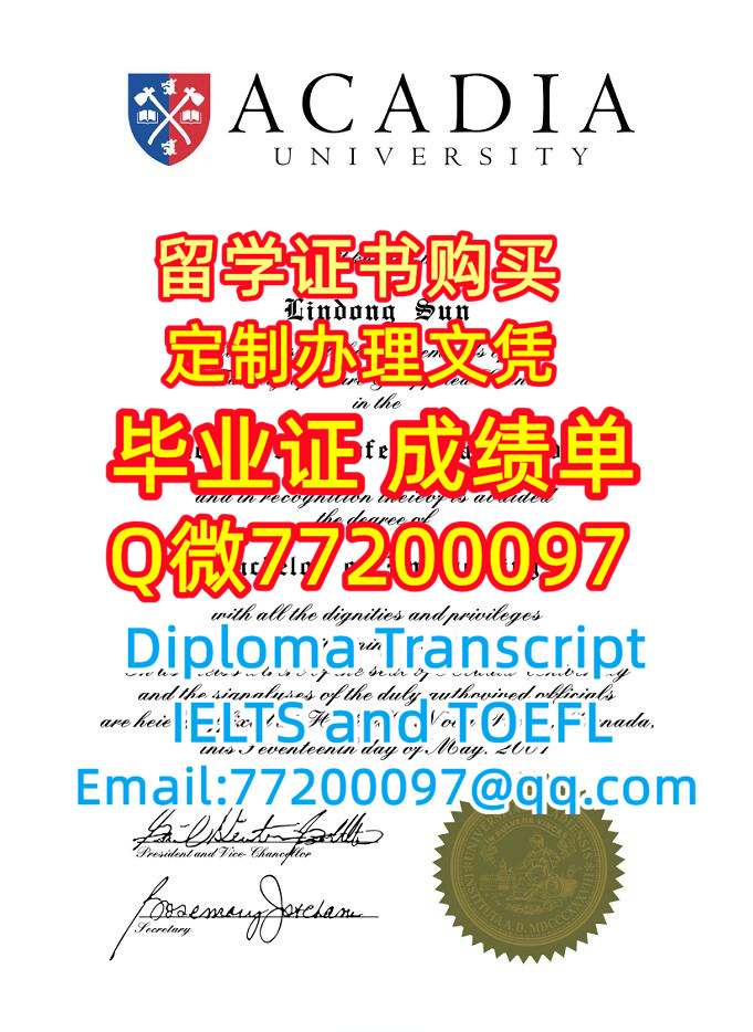 学历学位认证Acadia文凭证书做阿卡迪亚大学毕业证成绩单Q微77200097有Acadia学位证书精仿Acadia毕业证书能办Acadia成绩单制作阿卡迪亚大学文凭证书offer雅思托福Acadia University Diploma Degree Transcript