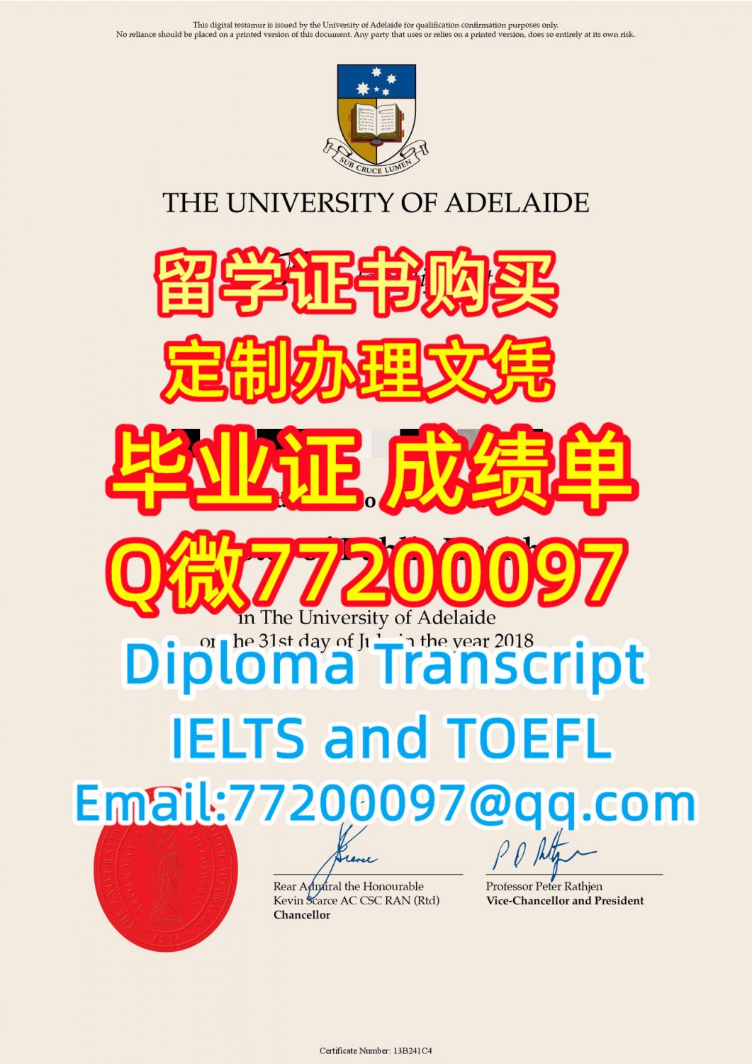 学历学位认证Adelaide文凭证书做阿德莱德大学毕业证成绩单Q微77200097有阿大学位证书精仿阿德毕业证书能办阿大成绩单制作阿德文凭证书offerUniversity of Adelaide Diploma Degree Transcript