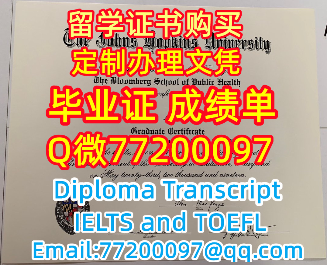 学历学位认证JHU文凭证书做约翰霍普金斯大学毕业证成绩单Q微77200097有JHU学位证书精仿JHU毕业证书能办JHU成绩单制作约翰霍普金斯大学文凭证书雅思托福Johns Hopkins University Bachelor/Master Diploma Degree Transcript