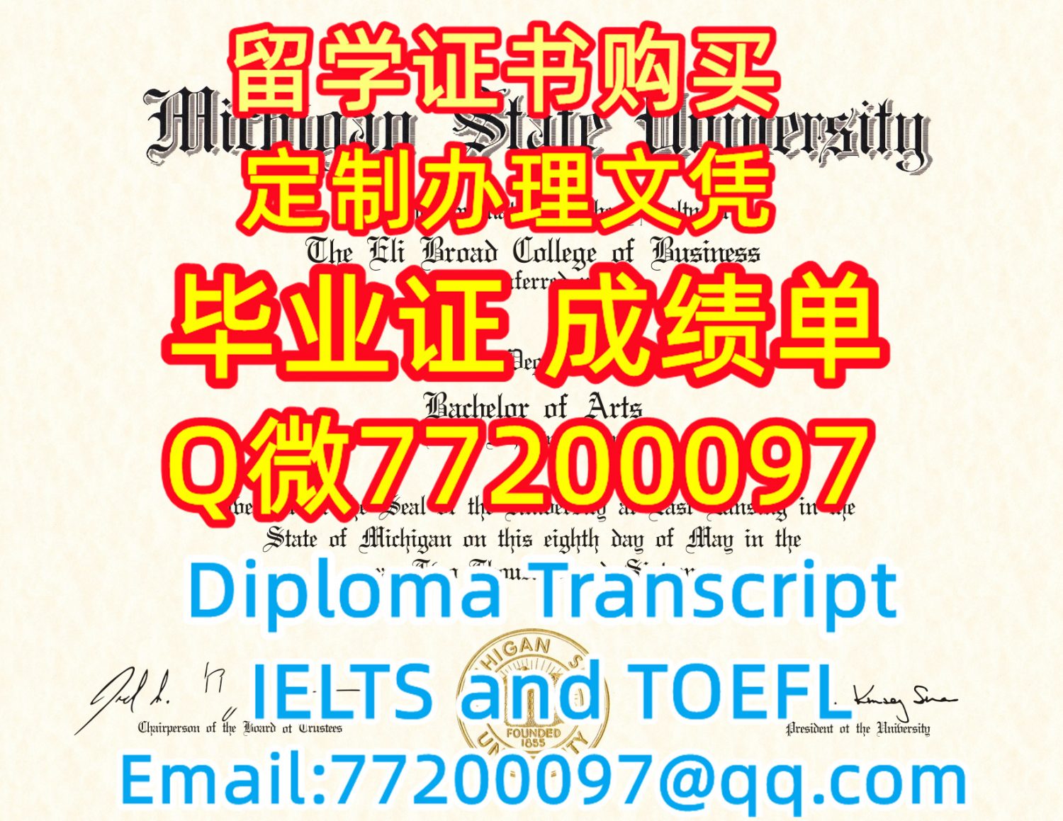 学历学位认证MSU文凭证书做密歇根州立大学毕业证成绩单Q微77200097有MSU学位证书精仿MSU毕业证书能办MSU成绩单制作密歇根州立大学文凭证书雅思托福Michigan State University Bachelor/Master Diploma Degree Transcript