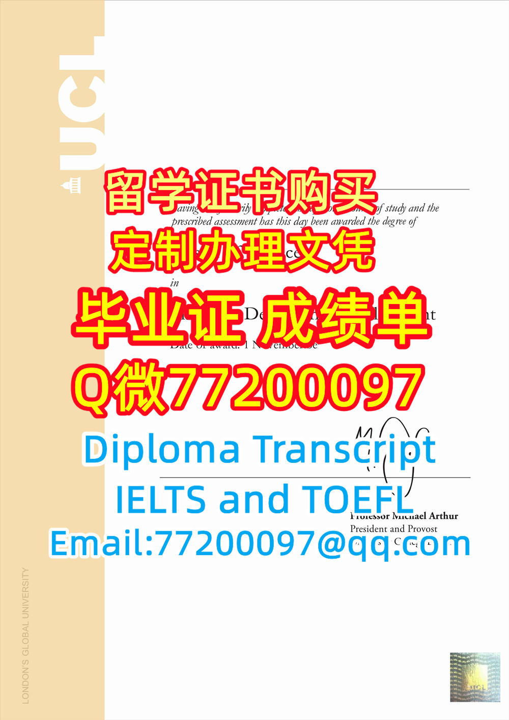 学历学位认证UCL文凭证书做伦敦大学学院毕业证成绩单Q微77200097有UCL学位证书精仿UCL毕业证书能办UCL成绩单制作伦敦大学学院文凭证书雅思托福University College London Diploma Degree Transcript