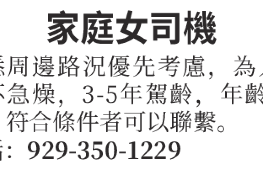 熟悉週邊路況優先考慮,為人細心不急燥,3-5年駕齡,年齡30-50,符合條件者可以聯繫