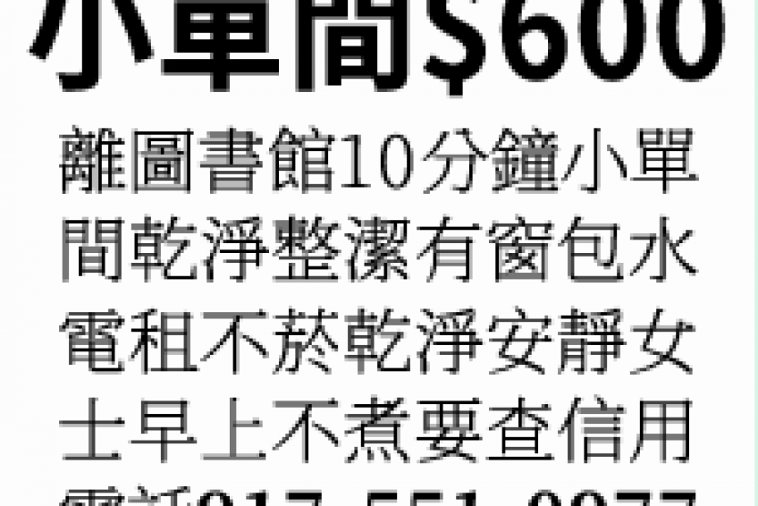 小單間$600