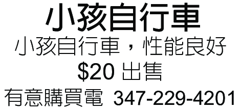 小孩自行車,性能良好, $20,電話:347-229-4201