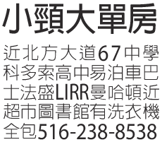 近北方大道67中學科多索高中易泊車Q12N20到法盛LIRR曼哈頓近超市圖書館有洗衣機全包516-238-8538