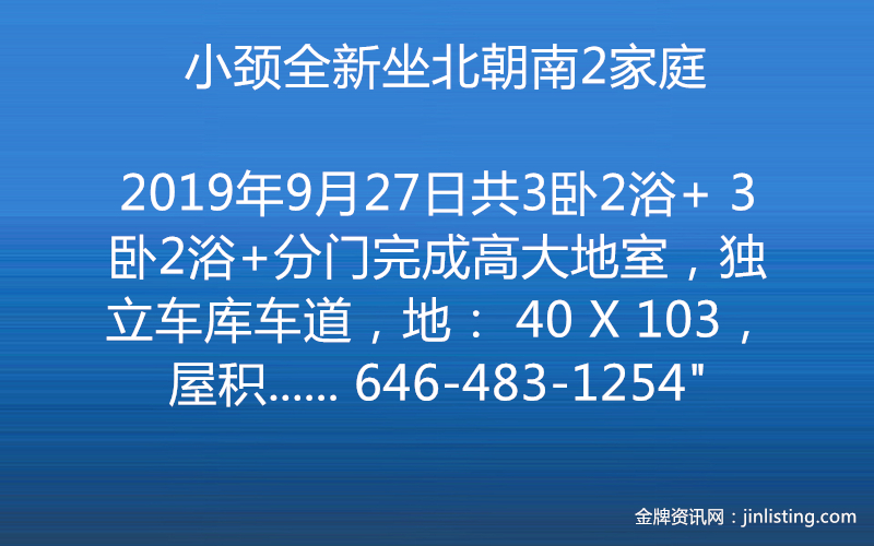 小颈全新坐北朝南2家庭 646-483-1254