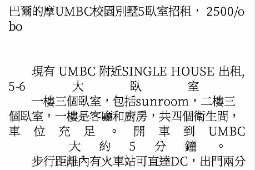 現有 UMBC 附近SINGLE HOUSE 出租, 5-6大臥室