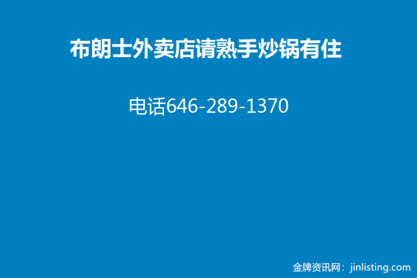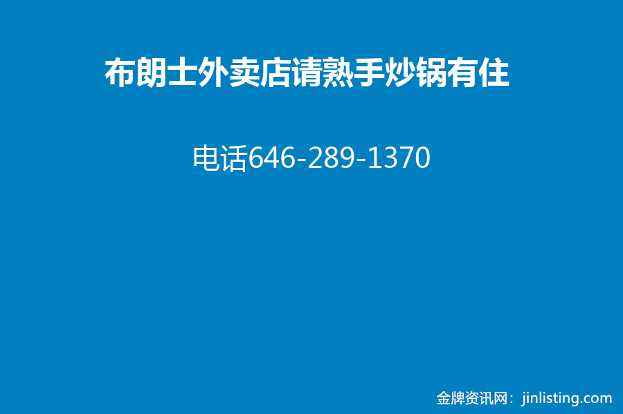 布朗士外卖店请熟手炒锅有住 电话646-289-1370