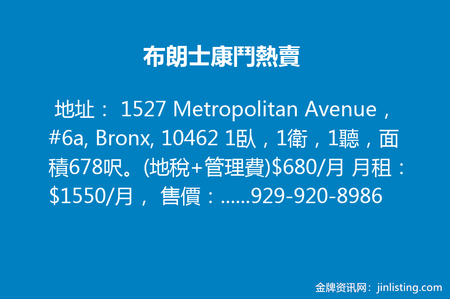 地址: 1527 Metropolitan Avenue,#6a, Bronx, 10462