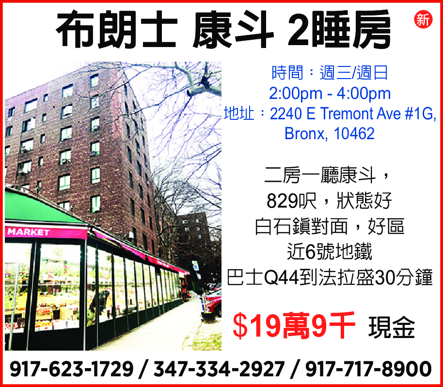布朗士 康鬥 2睡房 917-623-1729 347-334-2927 917-717-8900