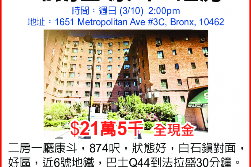 地址:1651 Metropolitan Ave #3C, Bronx, 10462