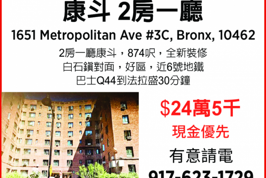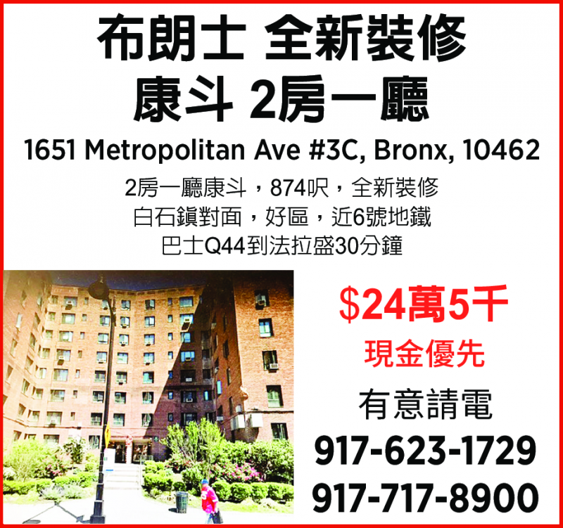 布朗士 康鬥2房一廳 917-623-1729 917-717-8900