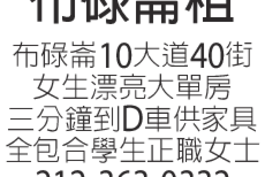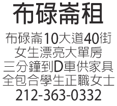 布碌侖10大道40街 女生漂亮大單房 三分鐘到D車供傢俱 全包合學生正職女士 212-363-0332