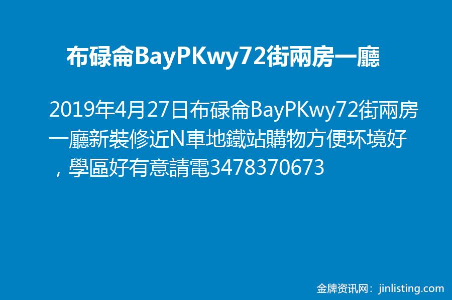 布碌侖BayPKwy72街兩房一廳新裝修近N車地鐵站購物方便环境好,學區好有意請電3478370673