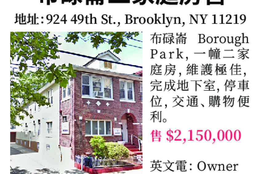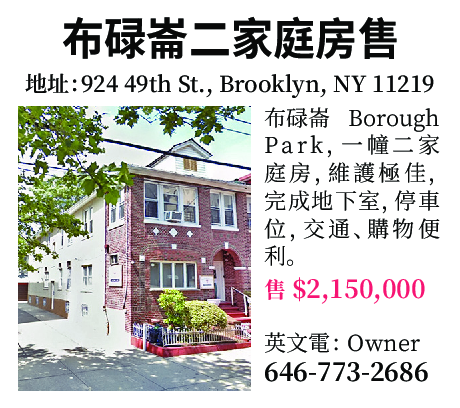 布碌崙Borough Park, 一幢二家庭房(地址:924 49th StBrooklyn, NY 11219),維護極佳,完成地下室,停車位,交通購物便利,售$2,150,000, 電:646 773 2686 Owner (英文)