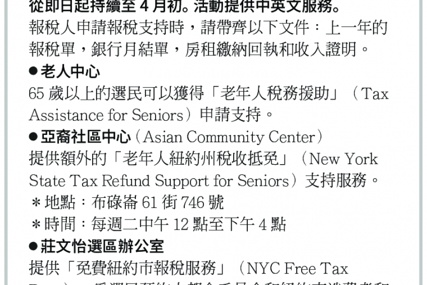 提供額外的「老年人紐約州稅收抵免」(New York State Tax Refund Support for Seniors)支持服務。