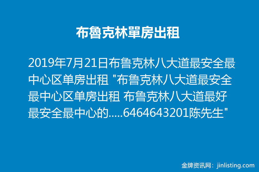 布鲁克林八大道最安全最中心区单房出租 “布鲁克林八大道最安全最中心区单房出租 布鲁克林八大道最好最安全最中心的地段9大道55街购物交通非常方便,(地铁N车D车步行8分钟)公交bus B16/B70/B9,附近有24小时水果超市!小学,公园!区域最安全!有一房间出租!房间较新,大窗户,大衣柜!独门独户(新装修过的房子)出入非常方便!人口少!大客厅!煮方便!有意请联系6464643201陈先生”