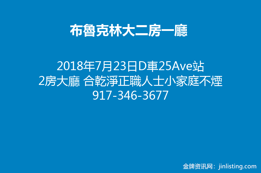 D車25Ave站2房大廳2樓多窗暖氣熱水自付合乾淨正職人士小家庭不煙917-346-3677或917-346-2285