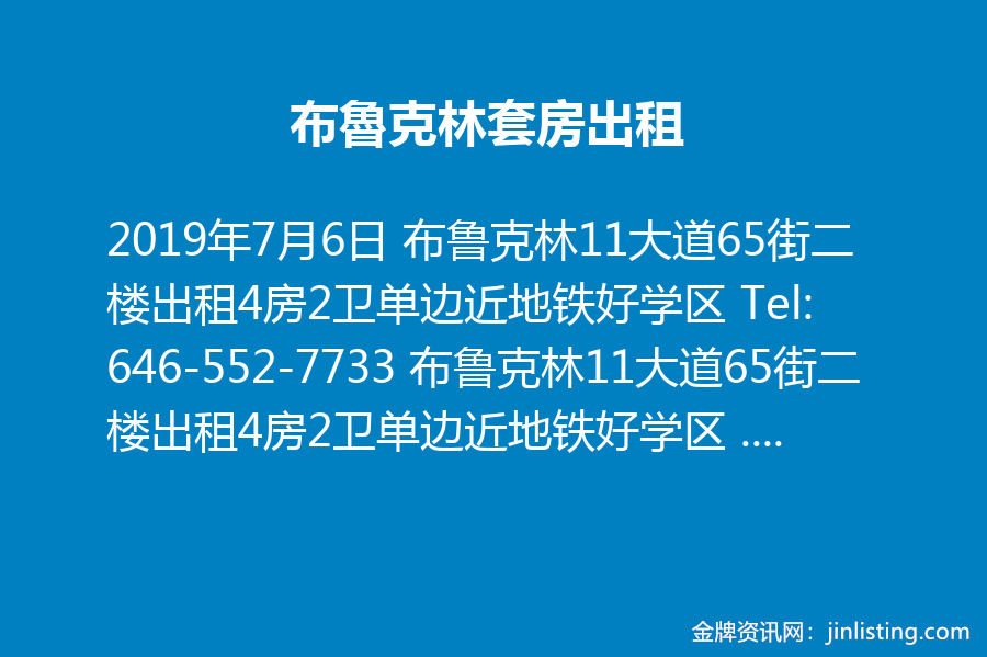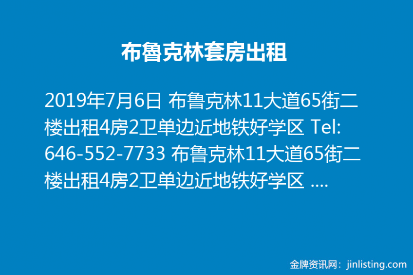 布鲁克林11大道65街二楼出租4房2卫单边近地铁好学区 Tel:646-552-7733 布鲁克林11大道65街二楼出租4房2卫单边近地铁好学区 Tel:646-552-7733