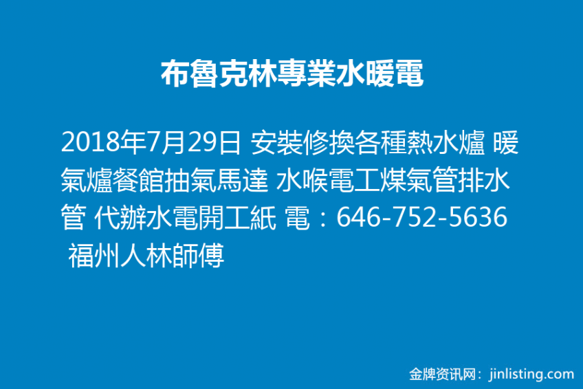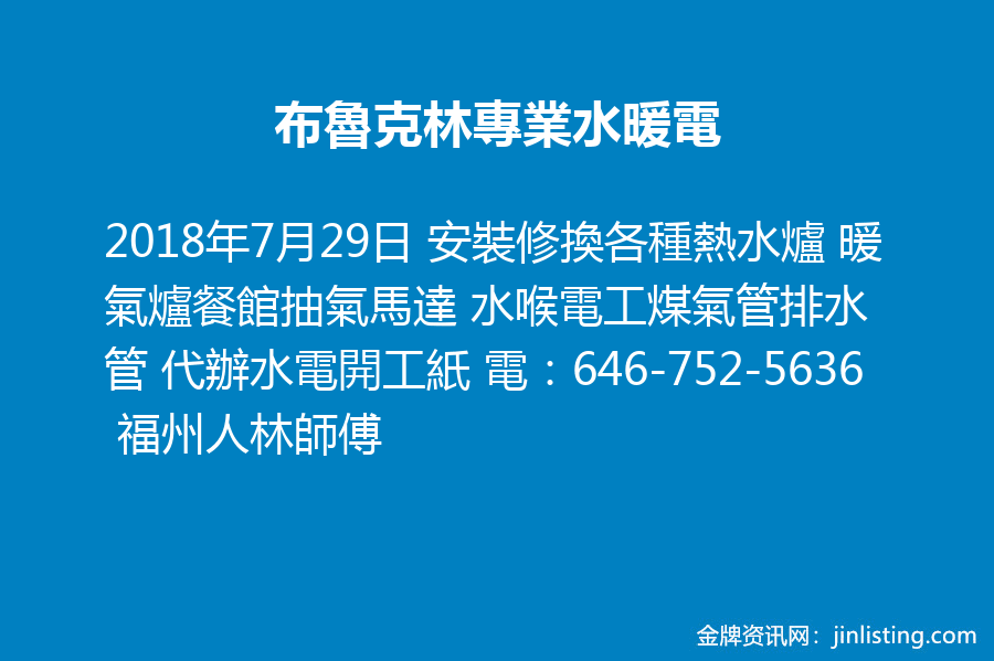 布魯克林專業水暖電 646-752-5636