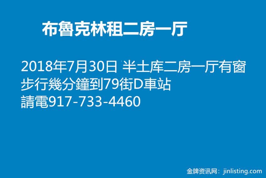 布魯克林租 半土库二房一厅有窗步行幾分鐘到79街D車站請電917-733-4460或917-250-5978