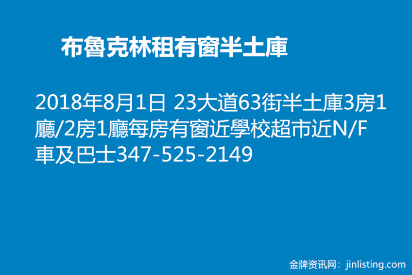 23大道63街半土庫3房1廳/2房1廳每房有窗近學校超市近N/F車及巴士347-525-2149或347-345-5073