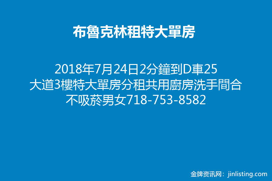 好區購物方便治安好2分鐘到D車25大道3樓特大單房分租共用廚房洗手間合不吸菸男女718-753-8582