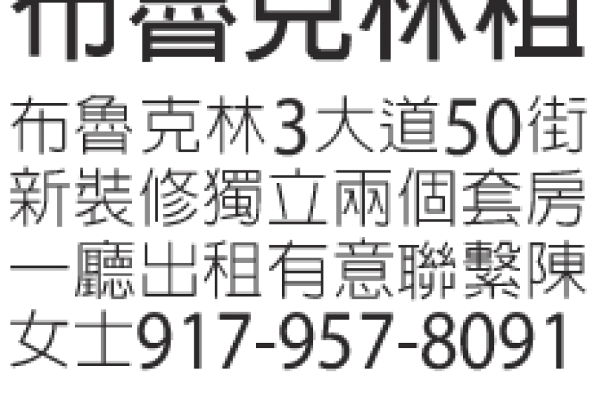 3大道50街新裝修獨立兩個套房一廳出租有意者聯繫:9179578091 陳女士