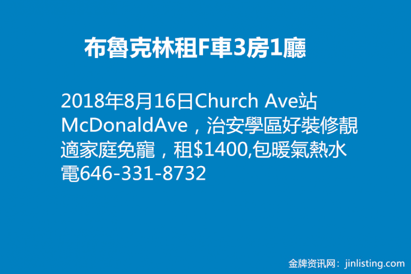 布魯克林租F車3房1廳    646-331-8732