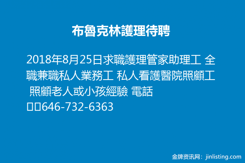 求職護理管家助理工 全職兼職私人業務工 私人看護醫院照顧工 照顧老人或小孩經驗 電話☎️646-732-6363