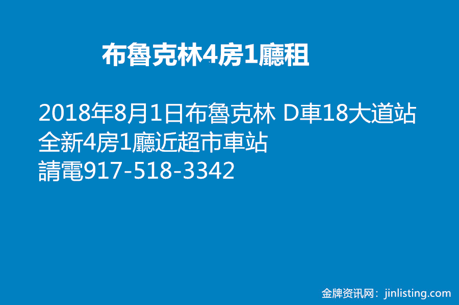 布魯克林 D車18大道站全新4房1廳近超市車站請電917-518-3342