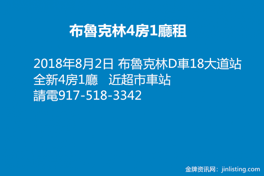 布魯克林 D車18大道站全新4房1廳近超市車站請電917-518-3342