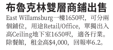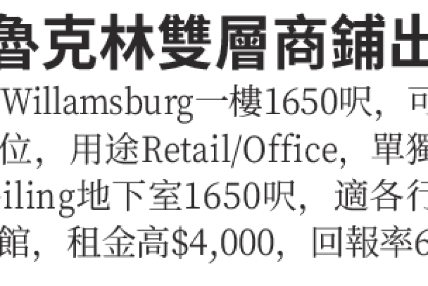 (餐館除外)租金高達$4,000︱回報率6.2。