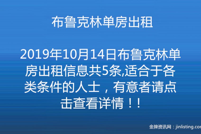 1. “布鲁克林 – 女单房出租 交通方便 — 5 分钟到地鐡、30分钟到哈顿 (Manhattan) 冶安好!!! 二楼、朝南、光猛、多窗、有衣柜、床、桌、和椅子。 近餐厅、超市、银行、公园、所有主要的交通、舒适的生活。 长租优先。 全包(水电煤气和互联网!!!) 请电 (718)404-6891 或发电邮 timberwave@gmail.com 或 微信 timberwave。”