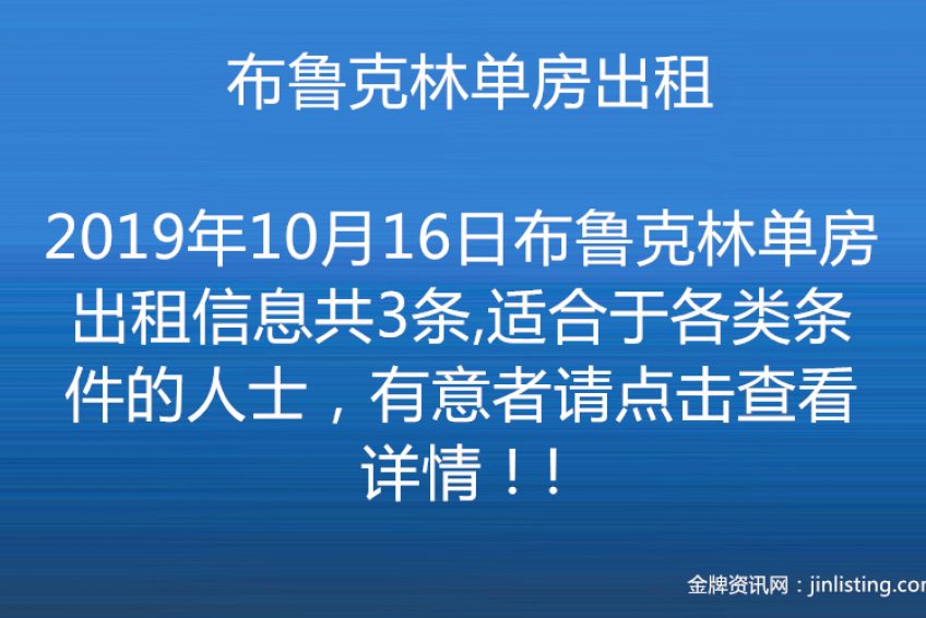 1. “布鲁克林 – 女单房出租 交通方便 — 5 分钟到地鐡、30分钟到哈顿 (Manhattan) 冶安好!!! 二楼、朝南、光猛、多窗、有衣柜、床、桌、和椅子。 近餐厅、超市、银行、公园、所有主要的交通、舒适的生活。 长租优先。 全包(水电煤气和互联网!!!) 请电 (718)404-6891 或发电邮 timberwave@gmail.com 或 微信 timberwave。”