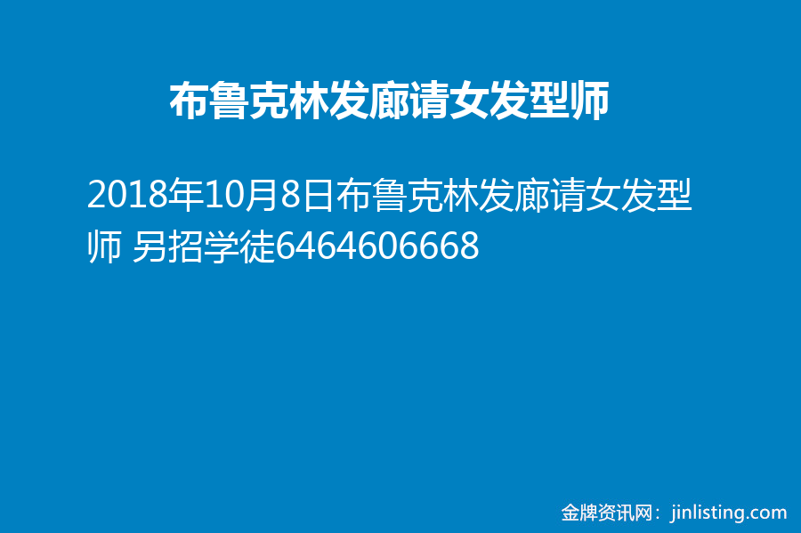 布鲁克林发廊请女发型师 另招学徒☎️6464606668