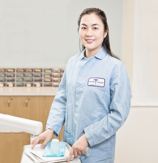 1994年她来到美国。此后不久,她被纽约大学(NYU)牙医学院录取。作为一名来自中国的熟练的牙医,她获得免修学分的资格,仅花了三年就获得牙科手术博士学位。