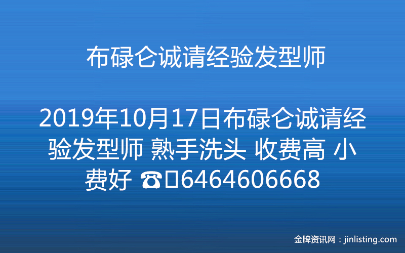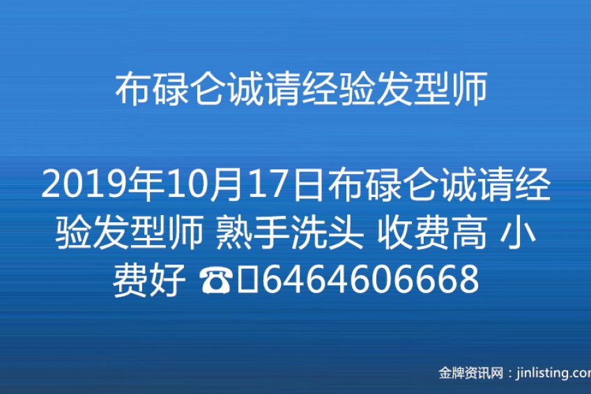 布碌仑诚请经验发型师 熟手洗头☎️6464606668 收费高 小费好